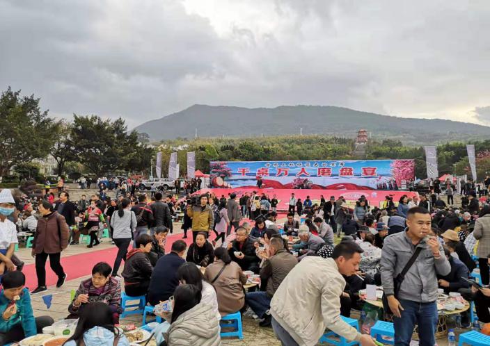 3月9日,新平县民族文化广场人头攒动,热闹非凡,全县17个民族的兄弟姊妹和来自全国各地的家人共计13000余人,齐聚新平民族文化广场,品位新平特色美食,感受新平独具魅力的民族文化,共享世界上规模最大的宴席——千桌万人磨盘宴。