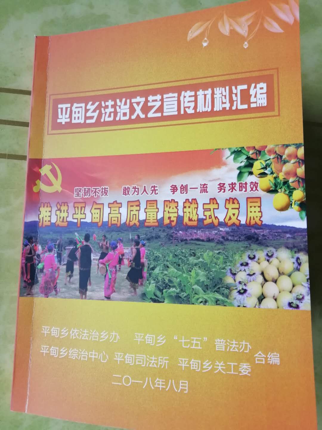 为充分发挥法治文化的教育、引导、熏陶和启迪功能,增强平甸乡尊法、学法、守法、用法意识,在县司法局和乡党委、政府的支持和领导下,平甸乡依托丰富的少数民族文化资源,通过繁荣法治文化引领法治建设。2018年8月平甸乡依法治乡办、平甸乡“七五”普法办、平甸司法所、平甸乡综治办、平甸乡关工委联合编辑了《平甸乡法治文艺宣传材料汇编》剧本。