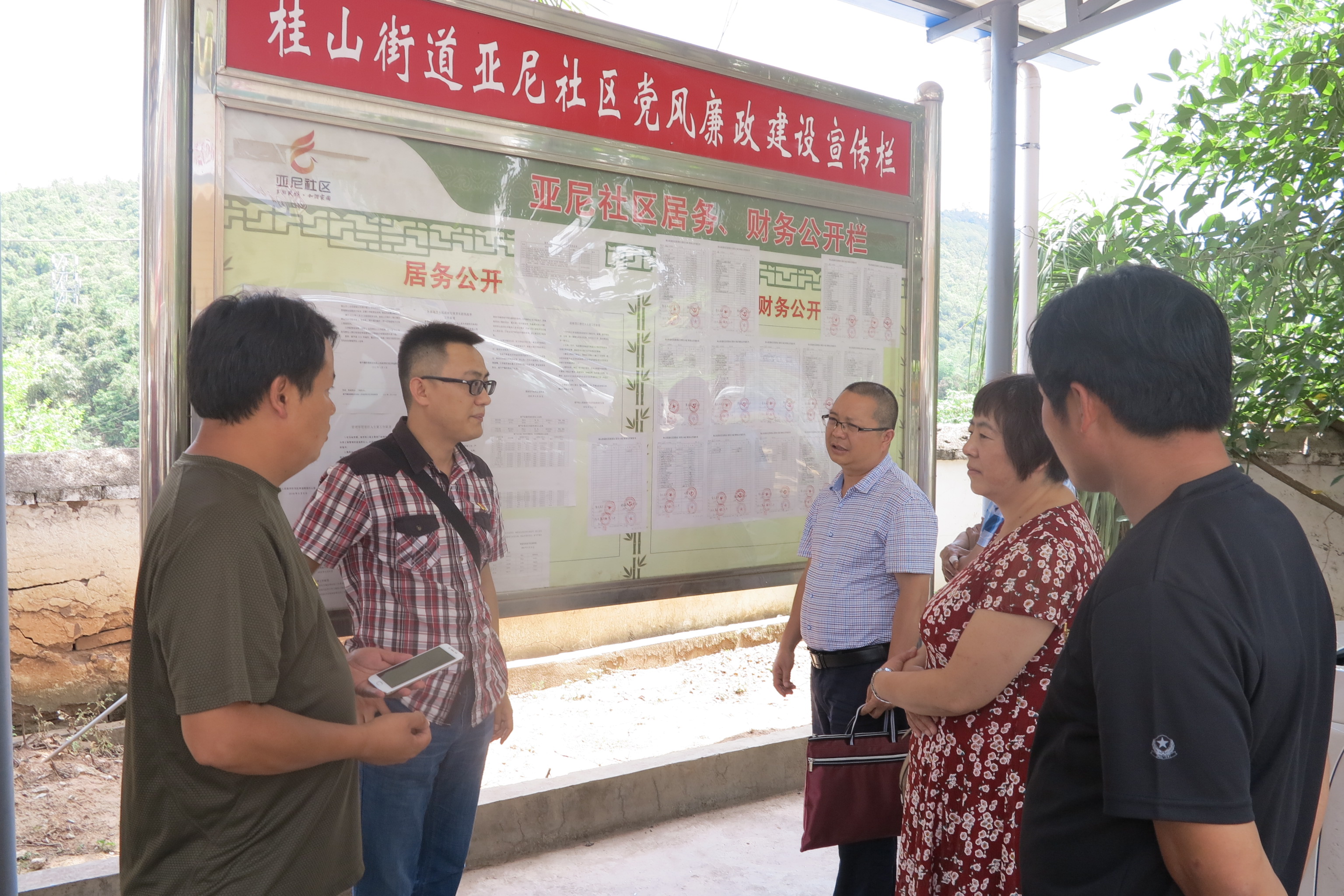 监督检查组先后深入到桂山街道亚尼社区、凤凰社区和街道办事处,重点从党工委办事处履行主体责任情况、纪工委履行监督责任情况、村级履行直接责任情况、街道党工委贯彻落实省纪委监委《关于对公职人员履职尽责情况加强监督的意见(试行)》情况等四个方面来进行监督检查。
