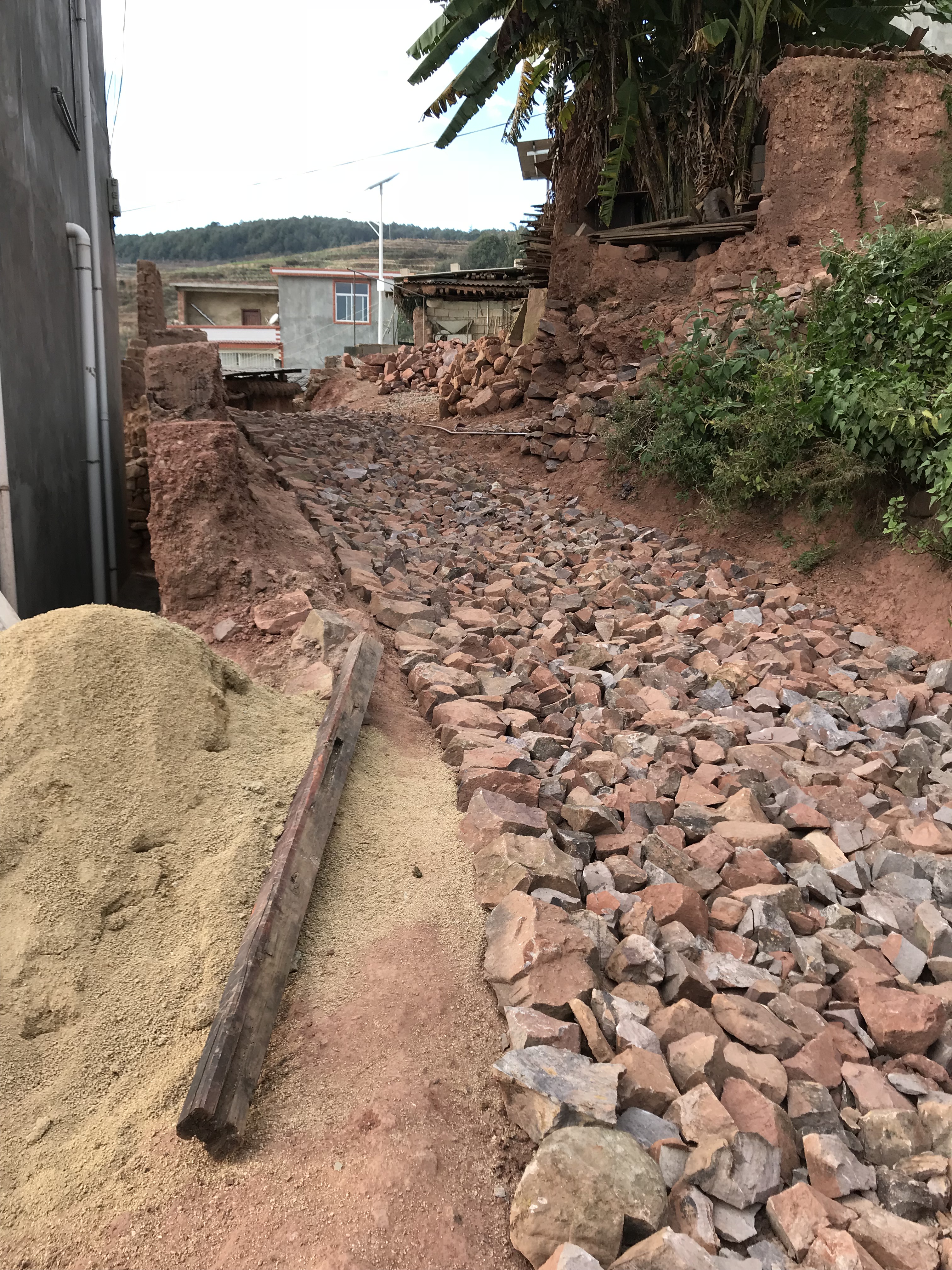 图为:项目实施中村民自愿出石铺路和项目完成情况 县专家组特别指出平甸乡红星村竜鸡小组美丽宜居村省级重点建设村项目试点建设,让有限的资金得到了最大发挥。乡党委,村组干部注重发挥村民主体作用,调动村民积极性和创造性,花小钱,多办事,把美丽乡村建设工作办好办实。在村组的道路硬化建设中,竜鸡小组村民积极响应,热情参与,自愿出石铺路,为美丽宜居建设出力、流汗,加快推进了美丽乡村建设。