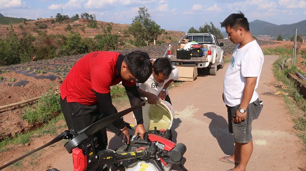 据悉,为全面促进烤烟高质高效发展,确保烤烟提质增效,新平领航农业发展有限公司引进了农用无人机。无人机操作员马绍文:“这台无人机是我们领航公司刚刚采购呢,还是可以的、好用方便,效率也高。我们领航公司以后要做好农户的烤烟病虫害的统防,为老百姓增加收入。”  据了解,新型农用无人机上装有过滤器,可以雾化农药,能减少20%至30%农药的使用量,这不仅可以节约成本,更重要的是能减轻农药对环境的污染。同时可低空喷施药肥具有操作简单、速度快、效率高、成本低、可规模化作业。还可以解决农村劳动力不足问题,标准化、机械化用药等特点。 技术员普龙介绍:“这款无人机叫V50,可以载20升药。它一小时能打50亩药,一天可打300亩左右。它没有电及农药时可以自动飞回原地。这个无人机轻巧、方便,有两平方米的地面就可以起飞降落,还可以卫星定位测地。” 截至目前,桃孔村共计统防烤烟病虫害两次4800亩,每亩每次收取5元费用,将为桃孔村增加集体经济收入24000元。利用无人机开展专业化植保服务,有效解决了雇工难、雇工贵的问题,减少烤烟植保环节用工,提高工作效率。对推动烟叶绿色生产具有重要作用,致使“小飞机”真正成为群众的“大帮手”。