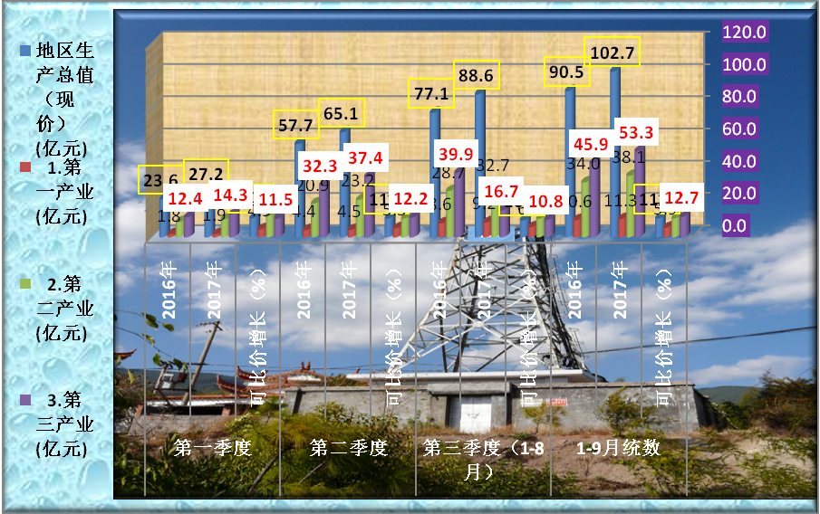 1-9月,在县委、县政府坚强领导下,新平县坚定不移地推行供给侧结构性改革,不断加强经济运行调度,努力克服国内外经济形势趋紧、重大灾害频发等困难,全县经济增速、物价涨幅、就业形势保持了“稳”,调结构、促改革、惠民生取得了“进”,积极变化和有利因素不断增多,在一季度良好开局基础上,继续保持平稳较快增长。 1-8月,全县生产总值完成88.6亿元,同比增长10.5%,增速与1-7月回落1个百分点;1-9月完成102.7亿元,同比增长11.6%,完成市级目标数的73.9%,滞后目标进度1.1个百分点。