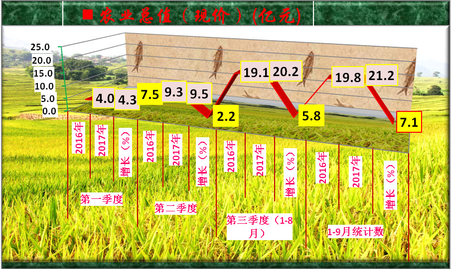 一、经济运行主要特点 (一)农业稳步发展。1-8月全县农业总产值20.2亿元,同比增长5.8%;1-9月完成农业总产值21.2亿元,增长7.1%,完成县级目标54.0%。