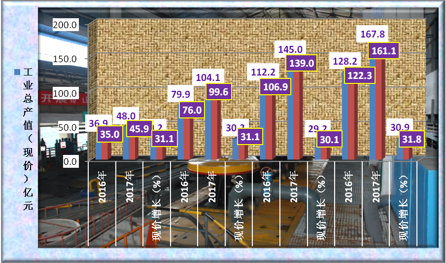 (二)工业平稳增长。1-8月,全县工业总产值完成145.0亿元,同比增长29.2%,其中规模以上工业总产值完成139.0亿元,同比增长30.1%;完成工业增加值30.9亿元,同比增长10.8%,其中规模以上工业完成增加值29.4亿元,同比增长10.2%。1-9月,全县工业总产值完成167.8亿元,同比增长30.9%,其中规模以上工业总产值完成161.1亿元,同比增长31.8%;完成工业增加值34.6亿元,同比增长10.2%,其中规模以上工业完成增加值34.1亿元,同比增长10.6%,完成市级目标73.5%,滞后1.5个百分点。