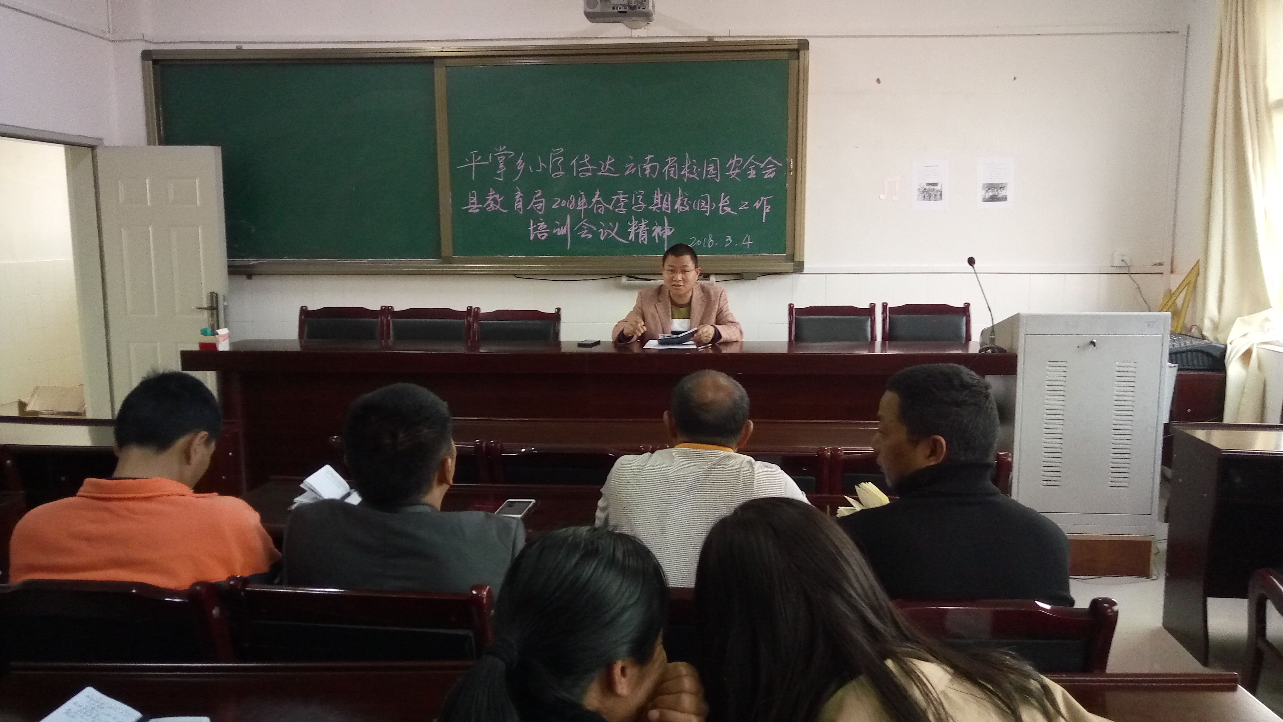 新平县平掌小学传达云南省校园安全会、新平县教育局2018年春季学期校(园)长工作培训会精神