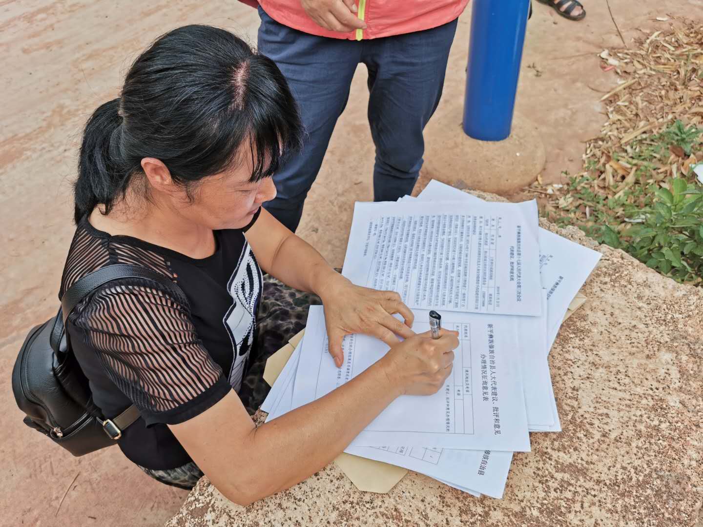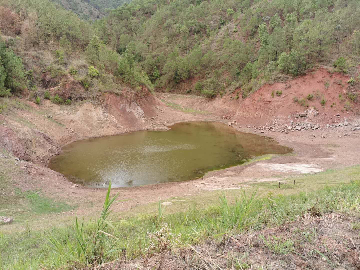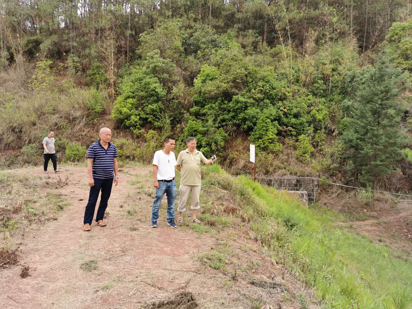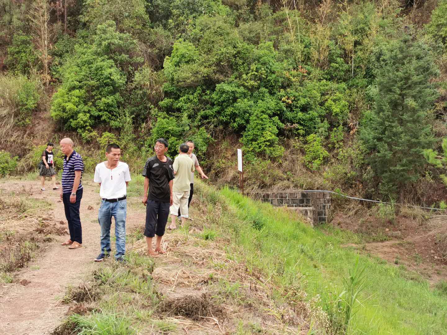 实地查看磨刀箐坝塘时,代表详细介绍了磨刀箐坝塘的基本情况,磨刀箐坝塘修建于1990年,因年久失修,周边存在
