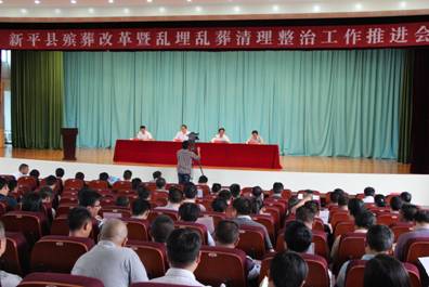 为加大乱埋乱葬治理力度,开展活人墓专项清理,推进全县殡葬改革深入发展,新平县召开全县殡葬改革暨乱埋乱葬清理整治工作推进会。会议以上午现场参观和下午召开推进会两个阶段进行。各乡镇(街道)乡镇长(办事处主任)、党委(党工委)副书记、分管副乡镇长(副主任)、民政助理员,县直各单位(含二级局)以上和各省市驻新各单位主要领导,县内各企业负责人共180多人参加了会议。会议由县人民政府副县长代永林主持,县委副书记、县人民政府县长李丁全和部分县级领导出席会议。