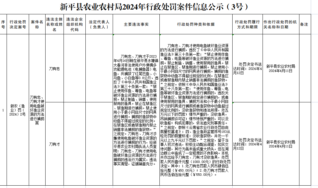 | 上一篇:新平县农业农村局2024年行政处罚案件信息公示(4号) | ||||