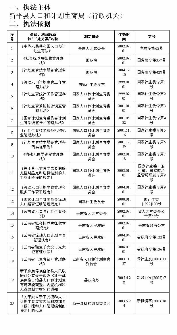 ��2.执法机构名称:新平县人口和计划生育局监督管理科