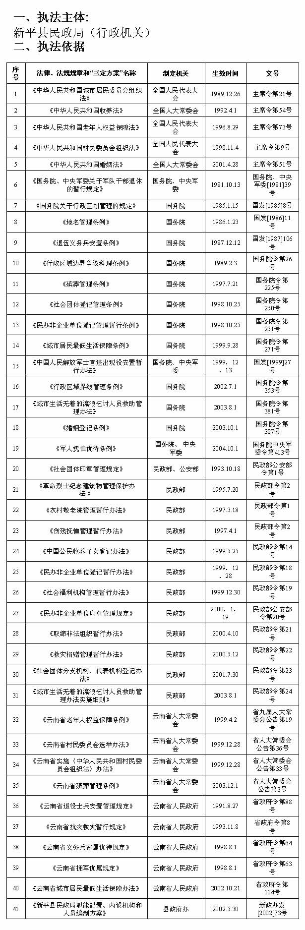 ��2.具体执法机构名称:社会福利和社会事务科。