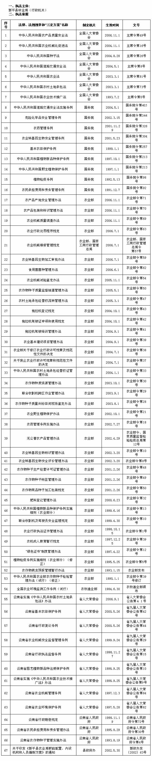 ��2、具体执法机构名称:新平县农业机械化技术学校。