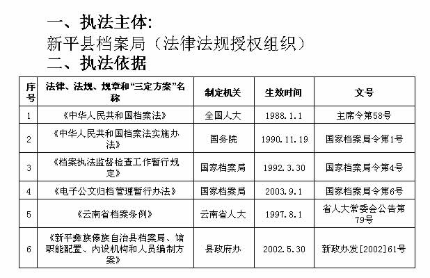��4、执法职权:依法对特殊情况需要变更向档案馆移交档案期限的事项进行审批。