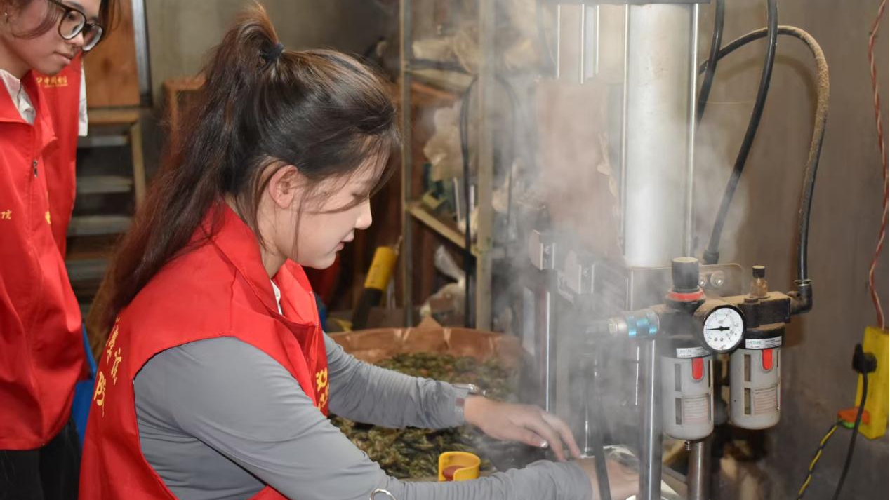 融局:文化传承与产业振兴,碰撞出别样火花 在者竜乡,不仅有蓬勃发展的产业,更有深厚的文化底蕴。为促进文化传承与产业振兴深度融合,实践团成员们开启了一场“文化寻宝之旅”。他们赴峨毛村茶园及茶厂研学,沉浸式体验制茶工艺,从采摘鲜叶到揉捻、发酵,再到最后的烘干、包装,每一个环节都让他们惊叹不已。随后,他们又探访了市级非遗“木榨核桃油”工坊,亲眼见证传统技艺中匠心的坚守与传承,感受古老工艺的独特魅力。在研学过程中,他们还积极与传承人交流,探讨如何将传统技艺与现代产业相结合,让非遗在新时代焕发出新的生机与活力。研学结束后,实践团分赴者竜村、腰村村开展深度产业考察,与村支书共商林下经济,探讨电商助力林下产品销售、林下经济产业链优化等议题,进一步深化政校企合作,为者竜乡的乡村产业振兴注入新的活力。 局终:青春力量,为乡村振兴添砖加瓦 短短六天的“三下乡”社会实践活动,虽短暂却充实,虽忙碌却收获满满。实践团以国家乡村振兴战略为指引,以数字技能为纽带,不仅拓宽了者竜乡农产品的销售渠道,更有效提升了者竜乡本土人才的数字素养,促进了文化传承与产业振兴的深度融合。同时,他们还充分发挥政校企协同作用,为者竜乡的乡村产业振兴贡献了高校学子的智慧与力量。实践团成员们用实际行动书写了新时代青年服务乡村的青春篇章,展现了玉溪师范学院学子的担当与风采。他们坚信,乡村振兴的道路上,有他们的足迹,更有他们的未来!