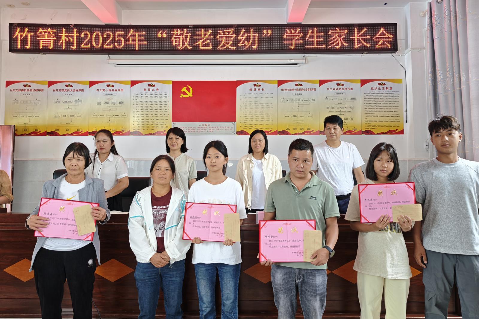 凝心聚力 共育未来 据悉,此次家长会对竹箐村24名优秀学生给予表彰奖励,共发放奖学金2.22万元。这份饱含暖意的奖学金,源于竹箐村对教育的重视与对下一代的关怀,以“干部规划家乡”行动为契机,设立尊老爱幼基金会,广泛凝聚全村党员干部群众的爱心力量,最终促成了奖励的落地。村党总支书记表示:“我们希望通过这样的方式,让我们村的优秀学生得到肯定,也让更多孩子以他们为榜样,在全村营造‘比学赶超’的良好氛围。” 会上,乡党委副书记、人民政府乡长陈兰向获得表彰的24名优秀学生表示热烈祝贺,肯定其在学业、品德等方面的努力与成果,称这份荣誉是个人奋斗的见证,也是家庭、学校与全村支持的结果。同时,鼓励学生珍惜荣誉、戒骄戒躁,将奖学金作为成长的新起点,继续保持勤奋好学的态度。也希望学生铭记家乡关爱,未来无论身在何处,都能心怀故土,用所学知识回报家乡、助力乡村发展,让爱心与责任在代际间传承。 竹箐村2025年“敬老爱幼”学生家长会的召开,为“家校政村社”协同育人机制合作奠定了坚实的基础。相信在多方的共同努力下,竹箐村的孩子们一定能够在充满爱与关怀的环境中健康成长,“敬老爱幼”的优良传统也将在这片土地上代代相传,绽放更加绚丽的光彩。