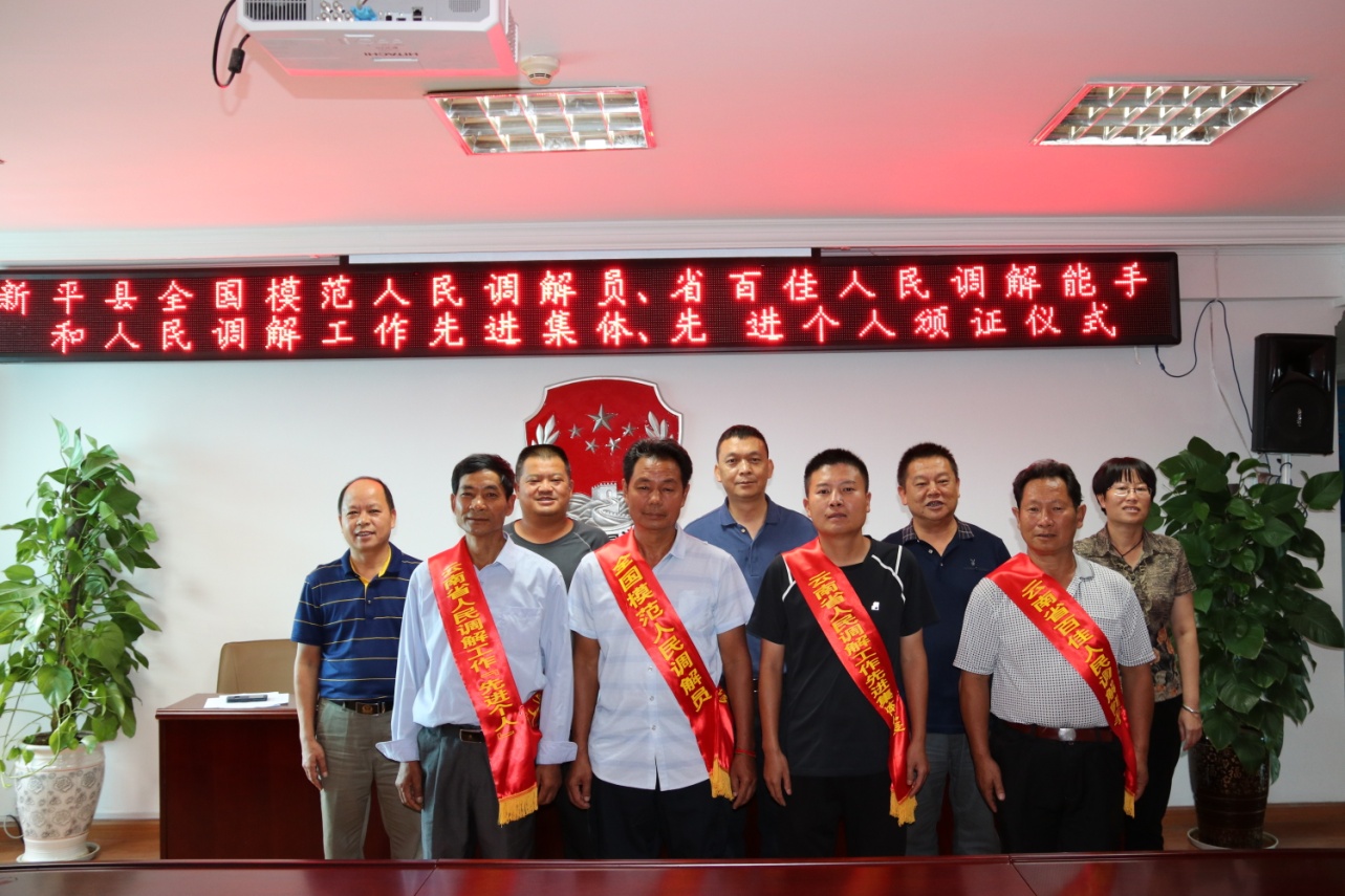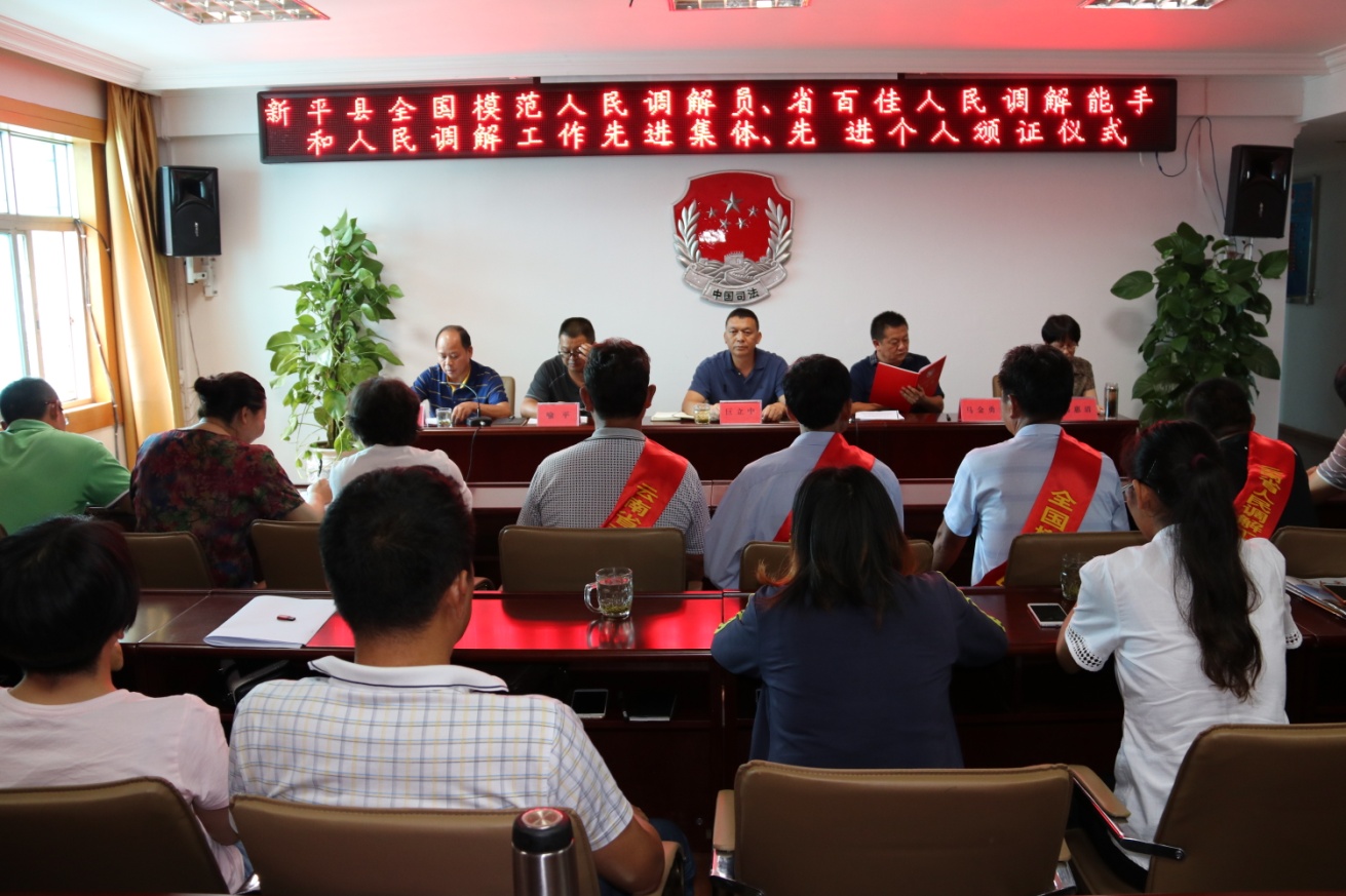 2018年7月25日,新平县举行全国模范人民调解员、省百佳人民调解能手和人民调解先进集体、先进个人颁证仪式。